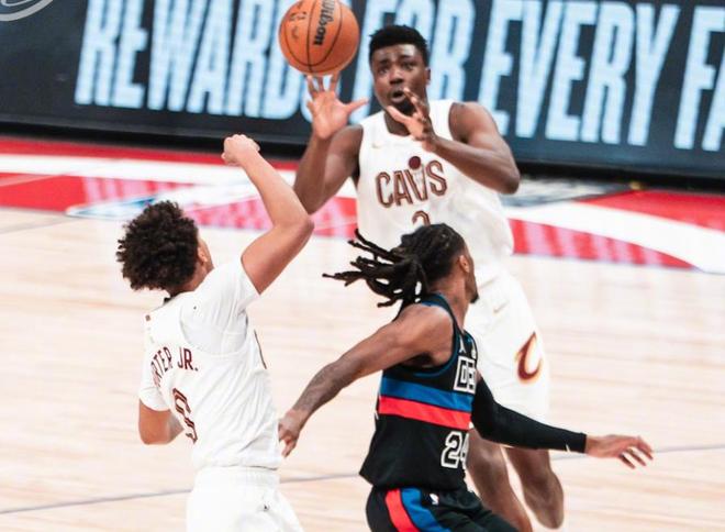 比赛一开始,骑士就展现了内线统治力。莫布里不仅仅内线能贡,还能在外线命中三分,阿伦则在内线翻江倒海,梅里尔也贡献远投,骑士靠着三核输出迅速建立优势,一度领先活塞10分。他们的攻防转换流畅,内线高度和外线威胁让活塞显得有些被动,仿佛角色互换,客场作战的骑士反而像更强的一方。阿伦、莫布里和梅里尔三大核心轮番开火,完全不惧怕活塞的防守。这种压制力让人们看到,即便缺少哈登和米切尔,骑士的体系依然坚实。