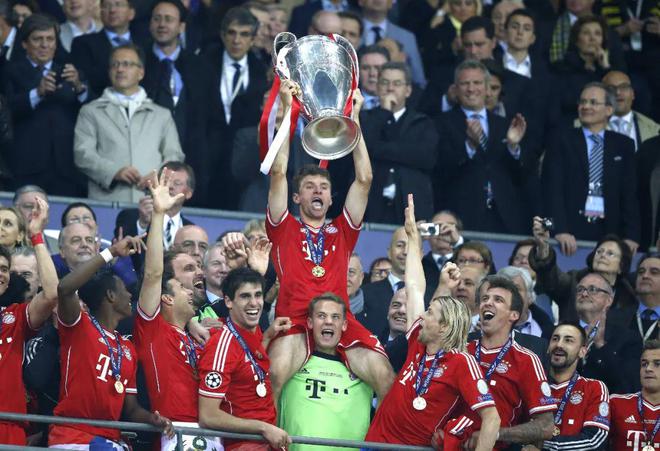 仅仅用了一个赛季,穆勒就回到了欧冠决赛的舞台,对手是他非常熟悉的多特蒙德。曼朱基奇和罗本的进球帮助拜仁2比1取胜,终于如愿捧杯。该赛季拜仁在德甲只输了一场球,早早地就确立了绝对优势,最终领先亚军25分夺冠;欧冠决赛后的德国杯决赛,穆勒点球破门首开纪录,戈麦斯连下两城,最终拜仁3比2战胜斯图加特。从“三亚”到“三冠”,畅快淋漓地逆转。